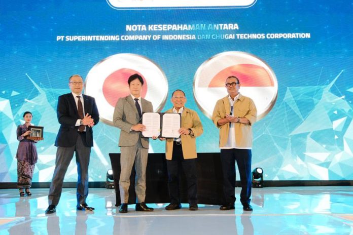 InfoEkonomi.ID – PT SUCOFINDO bersinergi kembali dengan Chugai Technos Corporation, sebagai upaya optimalisasi layanan NDT (Non-Destructive Test) khususnya untuk jasa Scale Checker serta perluasan bidang kerja sama di sektor energi, lingkungan, infrastruktur. Kerja sama ini dikukuhkan dalam Nota Kesepahaman (MoU), yang ditandatangani oleh Direktur Utama PT SUCOFINDO Mas Wigrantoro Roes Setiyadi dengan President and Representative Director Fukuma Satoshi pada perhelatan kegiatan Rapat Pimpinan Nasional 2023 PT SUCOFINDO di Bandung (23/2).