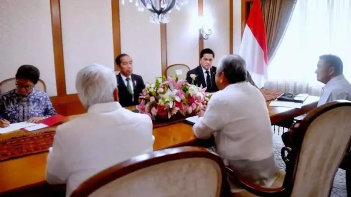 Turut mendampingi Presiden dalam pertemuan ini adalah Menteri Luar Negeri Retno Marsudi dan Menteri BUMN Erick Thohir.