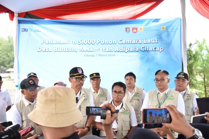 Sinergi ini ditandai dengan Acara Penanaman Perdana 5.000 Pohon Cemara Laut dan Kajian Sosial Kawasan Pencanangan Program Pemberdayaan Ekowisata Mangrove di Desa Bunton pada Kamis, 7 Maret 2023.