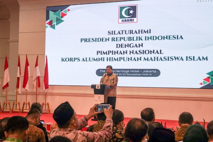 “Dengan alumni HMI yang berpendidikan tinggi, yang berkiprah di berbagai bidang dan profesi, KAHMI merupakan kekuatan besar yang dinantikan peran dan kontribusinya. Saya titip kepada KAHMI untuk berperan aktif mengakselerasi proses menuju Indonesia Emas, menjadi Indonesia Maju, menjadi negara berpenghasilan tinggi,” jelasnya.