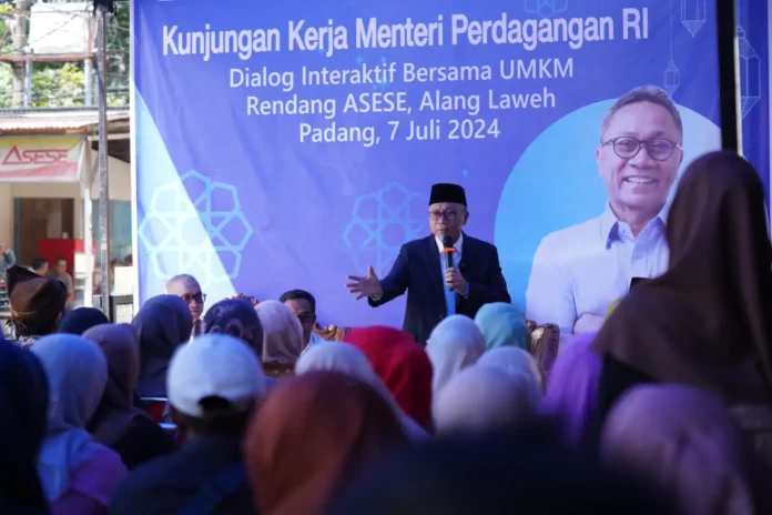 Ini disampaikan Mendag Zulkifli Hasan usai berkunjung dan berdiskusi dengan Pelaku UMKM di Rendang Asese, Padang, Sumatra Barat pada Minggu, (7/7). Kegiatan ini diikuti sekitar 100 pelaku UMKM yang berasal dari Kota Padang dan sekitarnya.