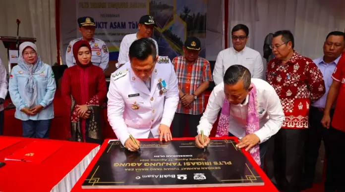 InfoEkonomi.ID – Bertepatan dengan peringatan Hari Ulang Tahun (HUT) ke-79 Republik Indonesia, PT Bukit Asam Tbk (PTBA) meresmikan Pembangkit Listrik Tenaga Surya (PLTS) irigasi di Desa Tanjung Agung, Kabupaten Muara Enim. Peresmian ini dilakukan oleh Hengky Putrawan, Penjabat (Pj) Bupati Muara Enim, bersama Suherman, Direktur Sumber Daya Manusia (SDM) PTBA.