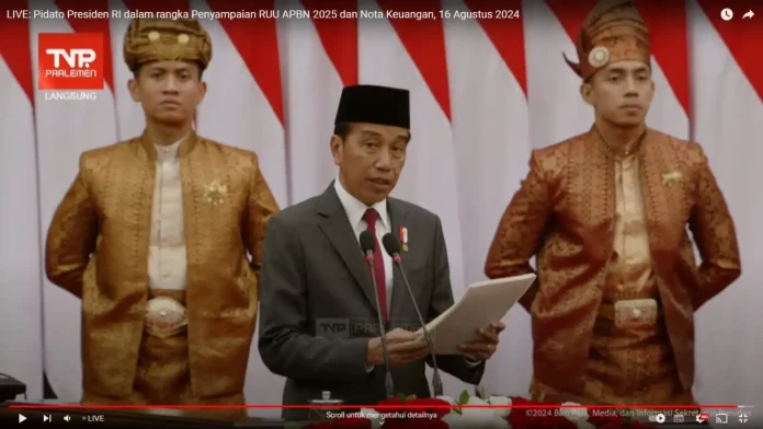 InfoEkonomi.ID – Presiden Joko Widodo (Jokowi) menegaskan bahwa pertumbuhan ekonomi stabil dan kesejahteraan meningkat selama satu dekade terakhir. Hal tersebut ia sampaikan dalam Penyampaian Keterangan Pemerintah atas Rancangan Undang-Undang Anggaran Pendapatan dan Belanja Negara (RUU APBN) Tahun Anggaran 2025 beserta Nota Keuangannya pada Rapat Paripurna Pembukaan Masa Persidangan I DPR RI Tahun Sidang 2024-2025 yang digelar di Gedung Nusantara MPR/DPR/DPD RI, Jakarta, Jumat (16/08/2024).