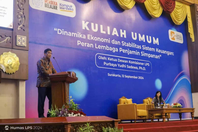InfoEkonomi.ID – Ketua Dewan Komisioner Lembaga Penjamin Simpanan (LPS) Purbaya Yudhi Sadewa memberikan kuliah umum di Universitas Sebelas Maret, Solo pada Kamis (12/9/2024). Dia memaparkan mengenai “Dinamika Ekonomi dan Stabilitas Sistem Keuangan serta Peran Lembaga Penjamin Simpanan” di hadapan para mahasiswa yang terlihat sangat antusias mengikuti kuliah umum tersebut.
