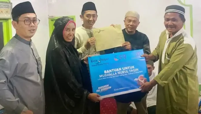 Musala Nurul Yaqin yang berlokasi di Lubuk Mata Kucing, Kelurahan Pasar Usang, Kecamatan Padang Panjang Barat, mendapatkan bantuan Corporate Social Responsibility (CSR) dari Bank Nagari senilai Rp2 juta. Bantuan ini diberikan dalam kunjungan Tim Safari Ramadhan (TSR) XIX pada Kamis (20/3/2025).