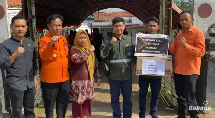 PT DAHANA menyalurkan bantuan kemanusiaan kepada warga terdampak pergerakan tanah di Desa Pasir Munjul, Kecamatan Sukatani, Kabupaten Purwakarta, Jawa Barat, pada Rabu, 18 Juni 2025. Bantuan diserahkan oleh Janitra Yoga, Senior Staff Tanggung Jawab Sosial dan Lingkungan DAHANA (TJSL) kepada Usep Supdana, perwakilan Badan Penanggulangan Bencana Daerah (BPBD) Jawa Barat.