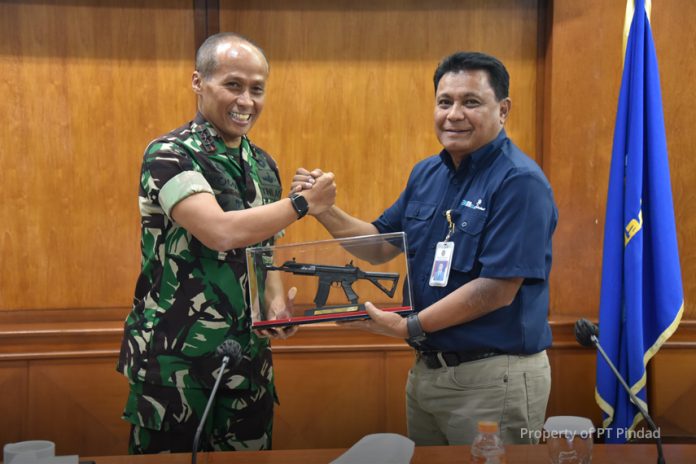 InfoEkonomi.ID – Direktur Utama PT Pindad, Abraham Mose didampingi Direktur Bisnis Produk Hankam, Wijil Jadmiko Budi dan Direktur Keuangan & Manajemen Risiko, Triyana beserta jajaran pejabat eselon I menerima kunjungan rombongan Komando Pembina Doktrin, Pendidikan dan Latihan Angkatan Darat (Kodiklatad) pada Selasa, 24 Januari 2023 di Auditorium PT Pindad Bandung. Kunjungan dihadiri langsung oleh Dankodiklatad Letjen TNI Ignatius Yogo Triyono yang didampingi oleh para petinggi Kodiklatad yang terdiri dari Wadankodiklatad Mayjen TNI Candra Wijaya, Irkodiklatad Mayjen TNI Tjaturputra Gunadi Genah, Wairkodiklatad Brigjen TNI Nefra Firdaus, Dirum Kodiklatad Brigjen TNI Agus Mintarto, Dirdok Kodiklatad Brigjen TNI Agustinus Purboyo, Dirlat Kodiklatad Brigjen TNI Hartono, Dirren Kodiklatad Brigjen TNI Firmansyah, Dirjian Kodiklatad Brigjen TNI Esy Suharto, Dirdik Kodiklatad Brigjen TNI Judi Paragina Firdaus.