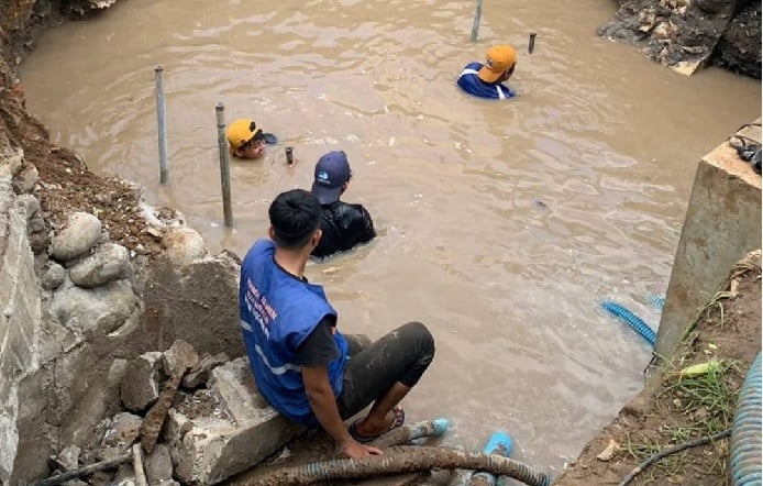 Berdasarkan pantauan bukamatanews.id, pengerjaan dilakukan pegawai PDAM Makassar pada dini hari tadi meski dalam kondisi hujan deras.