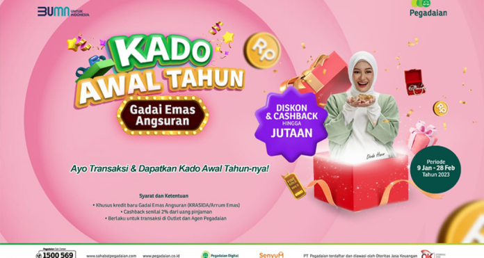 InfoEkonomi.ID – Sebagai bentuk apresiasi atas loyalitas nasabah yang terus memanfaatkan produk dan layanan, PT Pegadaian memberikan kejutan berupa program promo dan diskon bertajuk Kado Awal Tahun (KAT) 2023. Program ini berlaku sampai dengan 28 Februari 2023.