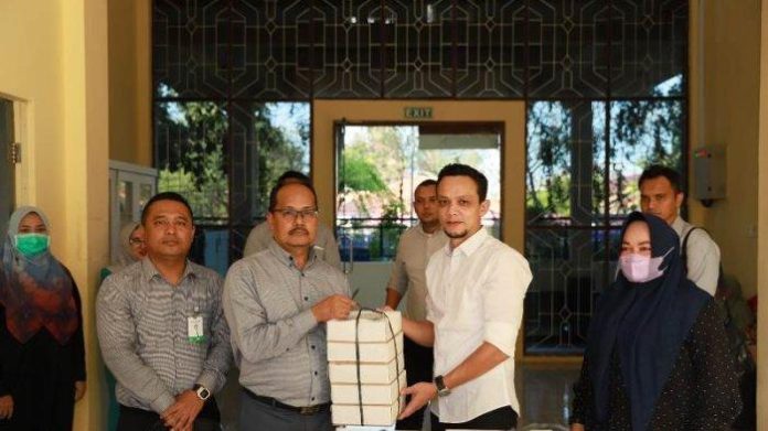 Paket iftar diserahkan langsung Said Zainal Arifin didampingi Kepala Bidang Sarana dan Prasarana, Mirza dan diterima Kepala Bagian Tata Usaha RSUZA, Afril Herry Purwansyah, SKM, MKes.