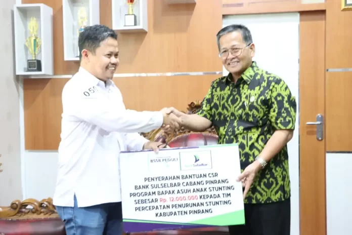 InfoEkonomi.ID – Bank Sulselbar Cabang Pinrang menyerahkan secara langsung bantuan Corporate Social Responsibility (CSR) kepada Wakil Bupati Pinrang Drs.H.Alimin,M.Si yang juga merupakan Ketua Tim Percepatan Penurunan Stunting (TPPS) Kabupaten Pinrang, Jum’at (11/8/2023).