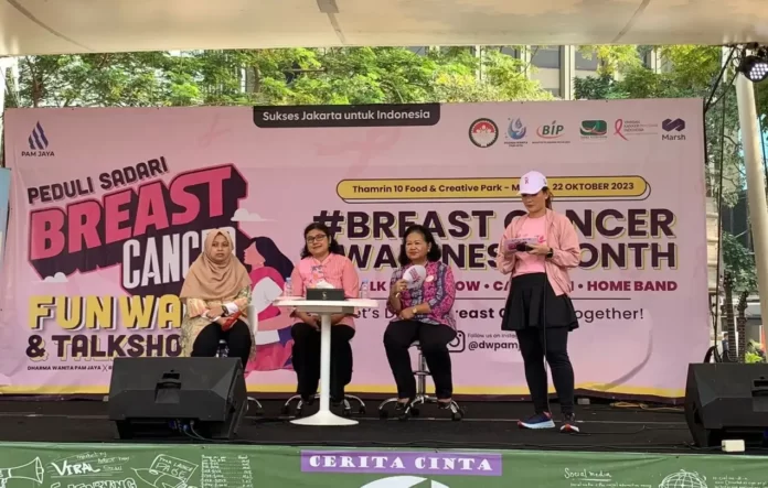 InfoEkonomi.ID – PAM JAYA melalui Dharma Wanita mengajak masyarakat untuk lebih meningkatkan kepedulian terhadap kanker payudara melalui acara ‘Peduli Sadari Breast Cancer Fun Walk & Talkshow di kawasan CFD Jakarta pada Minggu (22/10).