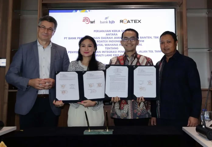 Penandatanganan PKS tersebut dilakukan oleh Pemimpin Divisi Digital Banking bank bjb Arfianto Ramadhian dengan Presiden Direktur PT. Roatex Indonesia Toll System Attila Keszeg dan Direktur PT. Digital Wahana International Nurlia Nafusa, yang juga disaksikan oleh Direktur Information Technology, Treasury & International Banking bank bjb Rio Lanasier.