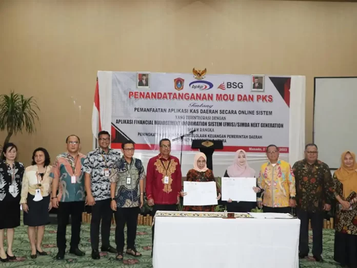 Penandatanganan Memorandum of Understanding (MoU) diwakili oleh Direktur Pemasaran Bank SulutGo Pius Batara, Kepala Badan Keuangan BPKP Maylan Tongkudu S.Kom, M.AP, dan Bupati Thariq Modanggu, S.Ag.,M.PD.I di Manado.