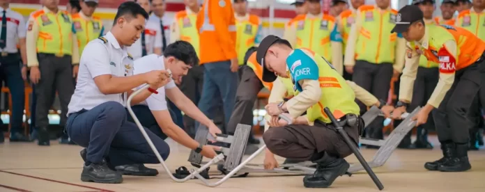 Petugas-petugas KAI Commuter iberikan pelatihan pemasangan tangga darurat untuk proses evakuasi pengguna Commuter Line ke lokasi yang aman jika terjadi kondisi darurat.
