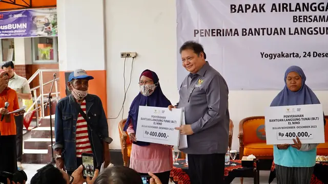 “Jadi kenapa kita berikan, karena tadi kering terus maka kita antisipasi harga-harga akan ada kenaikan tapi Alhamdulillah Pemerintah bisa jaga harga beras realtif stabil, minyak goreng stabil, sehingga kita bantu untuk penyangga,” ungkap Menteri Koordinator Bidang Perekonomian Airlangga Hartarto dalam Temu Wicara Bersama Masyarakat Yogyakarta Penerima Bantuan Langsung Tunai (BLT) El Nino di Kantor Pos Cabang Utama Yogyakarta, Minggu (24/12)