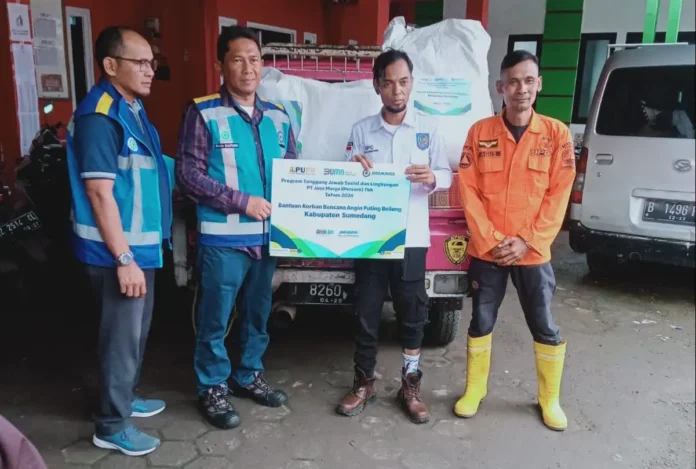 InfoEkonomi.ID – PT Jasa Marga (Persero) Tbk menyalurkan bantuan untuk korban terdampak angin puting beliung yang menerjang kawasan Rancaekek, Kabupaten Bandung dan di Jatinangor, Kabupaten Sumedang, Jawa Barat, pada Sabtu (24/02). Bantuan yang diberikan berupa multivitamin, paket sembako, air mineral, terpal, tikar, hingga gerobak dorong.