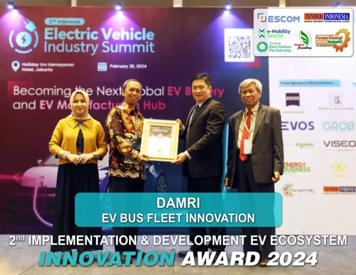 InfoEkonomi.ID – Perum DAMRI berhasil meraih penghargaan Innovation EV Bus Fleet pada 2nd Implementation & Development EV Ecosystem Innovation Award 2024 pada Kamis, 29 Februari 2024 lalu.