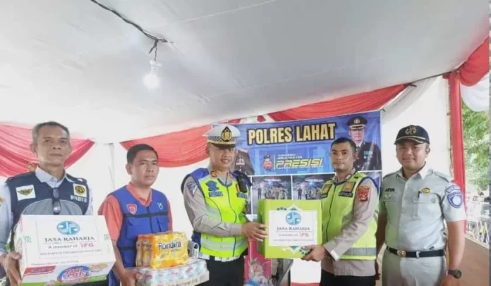 InfoEkonomi.ID – Jasa Raharja Cabang Sumatera Selatan melalui Jasa Raharja Lahat memberikan bingkisan kepada para petugas di Pos Pelayanan Lebaran (Posyan) tahun 2024 di wilayah Lahat.