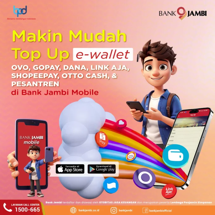 InfoEkonomi.ID – Para pengguna e-wallet OVO dan DANA kini tidak perlu khawatir, saat akan bertransaksi namun saldo habis, bisa langsung top up melalui Mobile Banking Bank Jambi. Dirut Bank Jambi, H. Khairul Suhairi, S.E.,M.M mengatakan, saat ini Bank Jambi menambah biller top up e-wallet OVO dan DANA sehingga semakin memudahkan nasabah untuk bertransaksi.