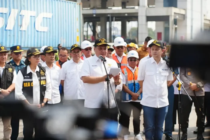 Didampingi oleh Menteri Keuangan Sri Mulyani Indrawati dan Wakil Menteri Perdagangan Jerry Sambuaga, pada kesempatan tersebut Menko Airlangga juga melihat secara langsung pengeluaran party barang sebanyak 5 kontainer komoditas besi baja.