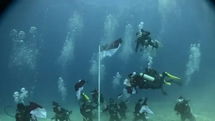 InfoEkonomi.ID – Bank Sulselbar Dive Club (BSSB Dive) menggelar acara istimewa untuk merayakan HUT ke-79 Republik Indonesia dengan mengibarkan bendera merah putih di dalam laut Pulau Kodingareng Keke pada Sabtu (17/8). Acara ini bertujuan untuk meningkatkan kesadaran tentang gaya hidup sehat, pelestarian laut, dan keberlanjutan ekonomi serta pesisir.