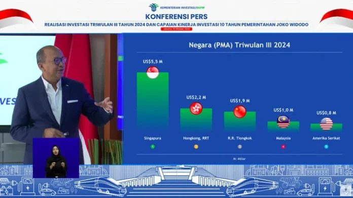 InfoEkonomi.ID – Menteri Investasi sekaligus Kepala Badan Koordinasi Penanaman Modal (BKPM) Rosan Roeslani mengungkapkan bahwa sektor manufaktur di Indonesia mencatatkan investasi tertinggi kedua pada triwulan III-2024, mencapai Rp 178,7 triliun. Angka ini berkontribusi sebesar 41,4% dari total investasi nasional yang tercatat sebesar Rp 431,5 triliun selama periode tersebut, dengan pertumbuhan tahunan sebesar 15,3%.