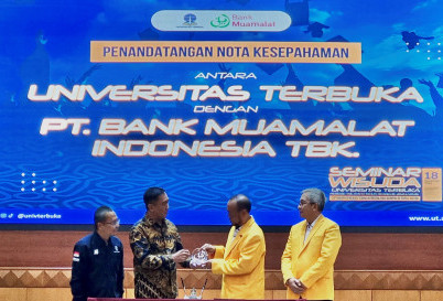 PT Bank Muamalat Indonesia Tbk resmi menandatangani nota kesepahaman dengan Universitas Terbuka dalam rangka pemanfaatan layanan jasa perbankan dan Tridharma Perguruan Tinggi. Penandatanganan kerja sama ini dilakukan oleh Direktur Bank Muamalat Karno dan Rektor Universitas Terbuka Prof. Ojat Darojat, M.Bus., Ph.D. di Gedung Universitas Terbuka Convention Center (UTCC), Banten pada Senin (18/11/2024).