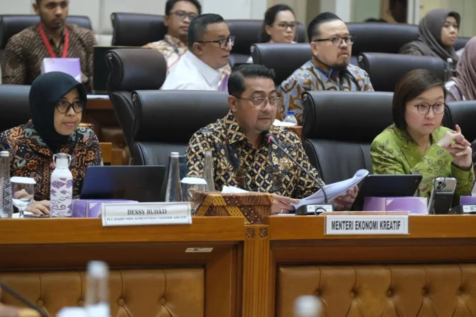 Menekraf Teuku Riefky Harsya mengatakan ekonomi kreatif berperan strategis dalam mewujudkan berbagai program prioritas Asta Cita Presiden Prabowo untuk mencapai pembangunan nasional yang inklusif dan berkelanjutan, dalam rapat kerja bersama Komisi VII DPR, Gedung Nusantara 1, Kompleks MPR/DPR, Senayan, Jakarta. Senin (18/11/2024).