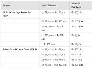 - Pajak atas cashback ditanggung oleh BCA Life.