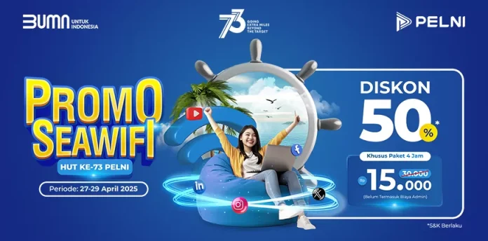 Dalam rangka memperingati Hari Ulang Tahun (HUT) ke-73, PT Pelayaran Nasional Indonesia (PELNI) memberikan kejutan spesial bagi para pelanggan setianya. Kali ini, PELNI menghadirkan promo menarik berupa diskon 50% untuk penggunaan layanan internet Seawifi di kapal-kapal pilihannya.