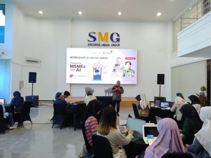 Untuk meningkatkan kapasitas pelaku UMKM dalam pemanfaatan teknologi digital untuk penguatan bisnis, PT Telkom Indonesia (Persero) Tbk mengadakan pelatihan penggunaan Artificial Intelligence (AI) bertajuk “Empowering MSMSe With AI”, Sabtu (2/8), di Radya Litera Hall, Griya Solopos, Solo.