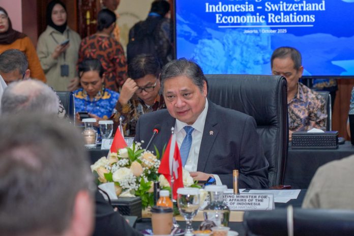 Menteri Koordinator Bidang Perekonomian Airlangga Hartarto menerima kunjungan Wakil Presiden Konfederasi Swiss sekaligus Federal Councilor Guy Parmelin yang didampingi pula oleh delegasi bisnis Swiss, pada Rabu (1/10) di Jakarta. Pertemuan ini membahas tindak lanjut implementasi Indonesia–EFTA Comprehensive Economic Partnership Agreement (IE CEPA), penguatan kerja sama investasi, energi terbarukan, kesehatan, serta pengembangan sumber daya manusia.
