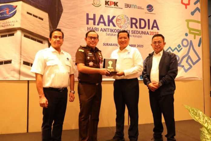 Dalam rangka memperingati Hari Anti Korupsi Sedunia (HAKORDIA) tahun 2025, Perum LPPNPI (AirNav Indonesia) menyelenggarakan kegiatan sosialisasi pencegahan dan penindakan korupsi dengan tema ”Satukan Aksi, Basmi Korupsi”. Kegiatan yang dihadiri unsur penegak hukum, mitra kerja, organisasi profesi, serta perwakilan karyawan tersebut, digelar di Surabaya, Rabu, 10 Desember 2025.