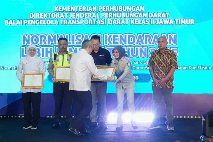 Pada kesempatan tersebut, Plt. Direktur Utama Jasa Raharja Dewi Aryani Suzanamewakili perusahaan menerima sertifikat penghargaan dari Menteri Perhubungan atas dukungan terhadap program penanganan ODOL. Penghargaan serupa juga diberikan kepada Korlantas Polri, Gubernur Jawa Timur, dan PT Jasa Marga (Persero) Tbk sebagai bentuk apresiasi atas kontribusi dan kolaborasi dalam penguatan tatakelola transportasi.