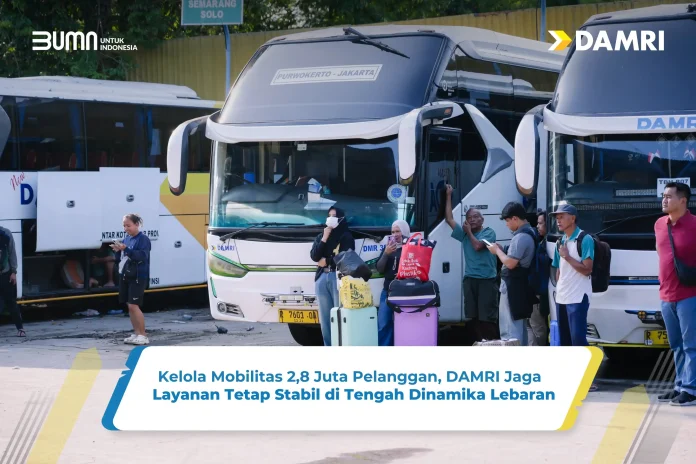 DAMRI membukukan capaian positif selama periode Angkutan Lebaran 1447 H/2026 dengan melayani lebih dari 2,8 juta pelanggan, meningkat sekitar 35 persen dibandingkan realisasi Angkutan Lebaran 2025 sebesar 2,06 juta pelanggan.